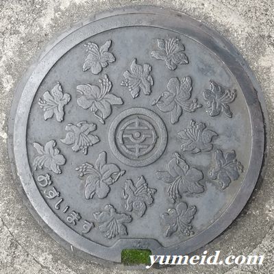 デザイン蓋には市の花である「ツツジ」を描いた蓋と幾何学模様の蓋が存在する。
