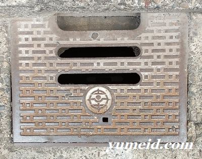 比較的古そうな蓋には市章の近くに小さな四角い穴が見られるが、用途は今一つ分からない。